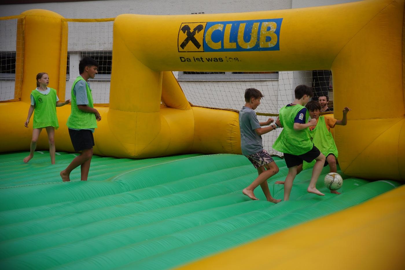 Die Schülerinnen und Schüler traten in Teams gegeneinander an und stellten ihr Können bei verschiedenen Spielen unter Beweis. Gespielt wurden Beachvolleyball, TicTacToe und als besonderes Highlight das actionreiche Soap Soccer, das für jede Menge Spaß und nasse Überraschungen sorgte.