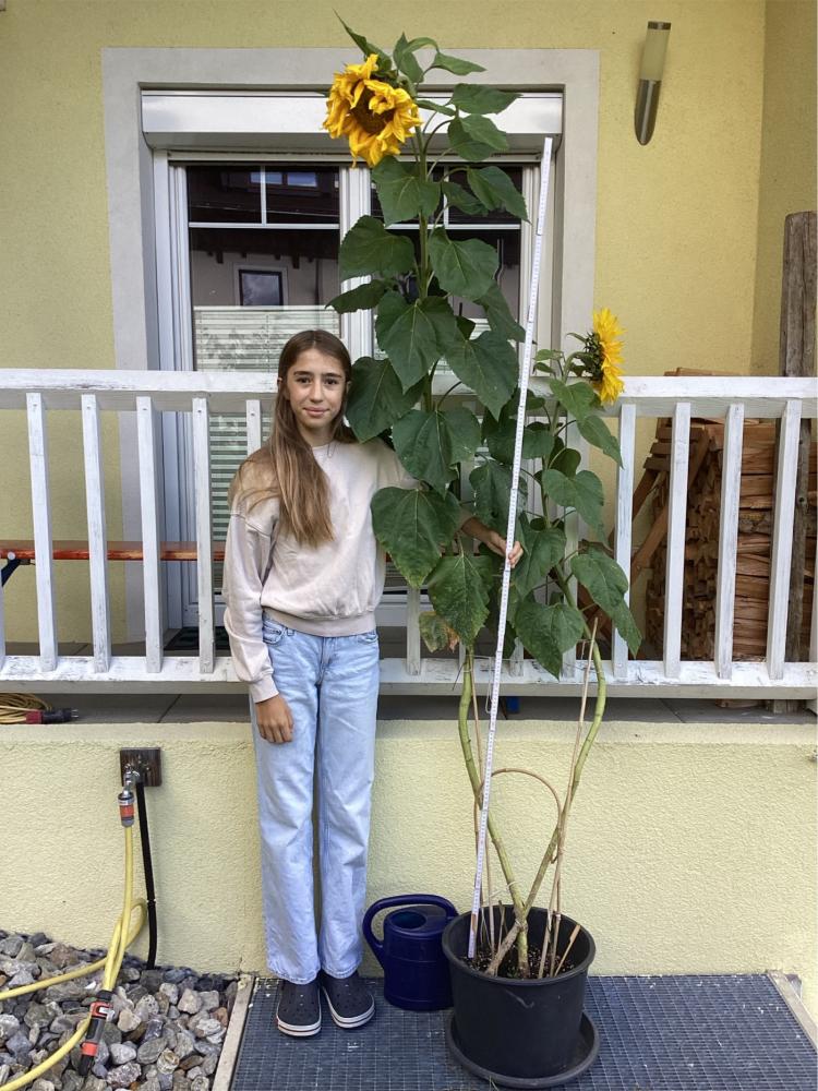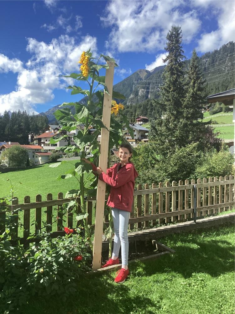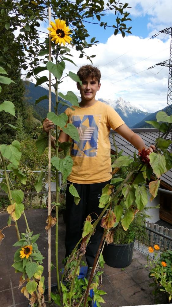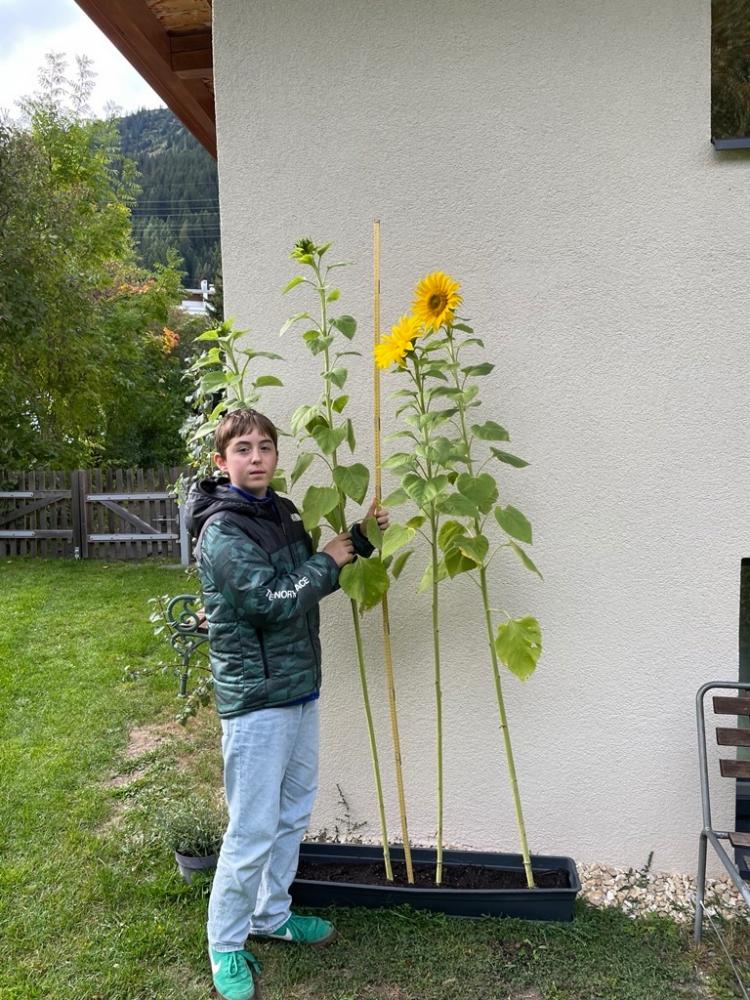In diesem Jahr haben einige Schüler*innen der 2. und 3. Klassen am Wettbewerb „Wer hat die größte Sonnenblume?“ des Vereins Grünes Tirol teilgenommen. Mit viel Freude, Geduld und grünen Daumen wurden die Sonnenblumen gepflegt und gemessen.